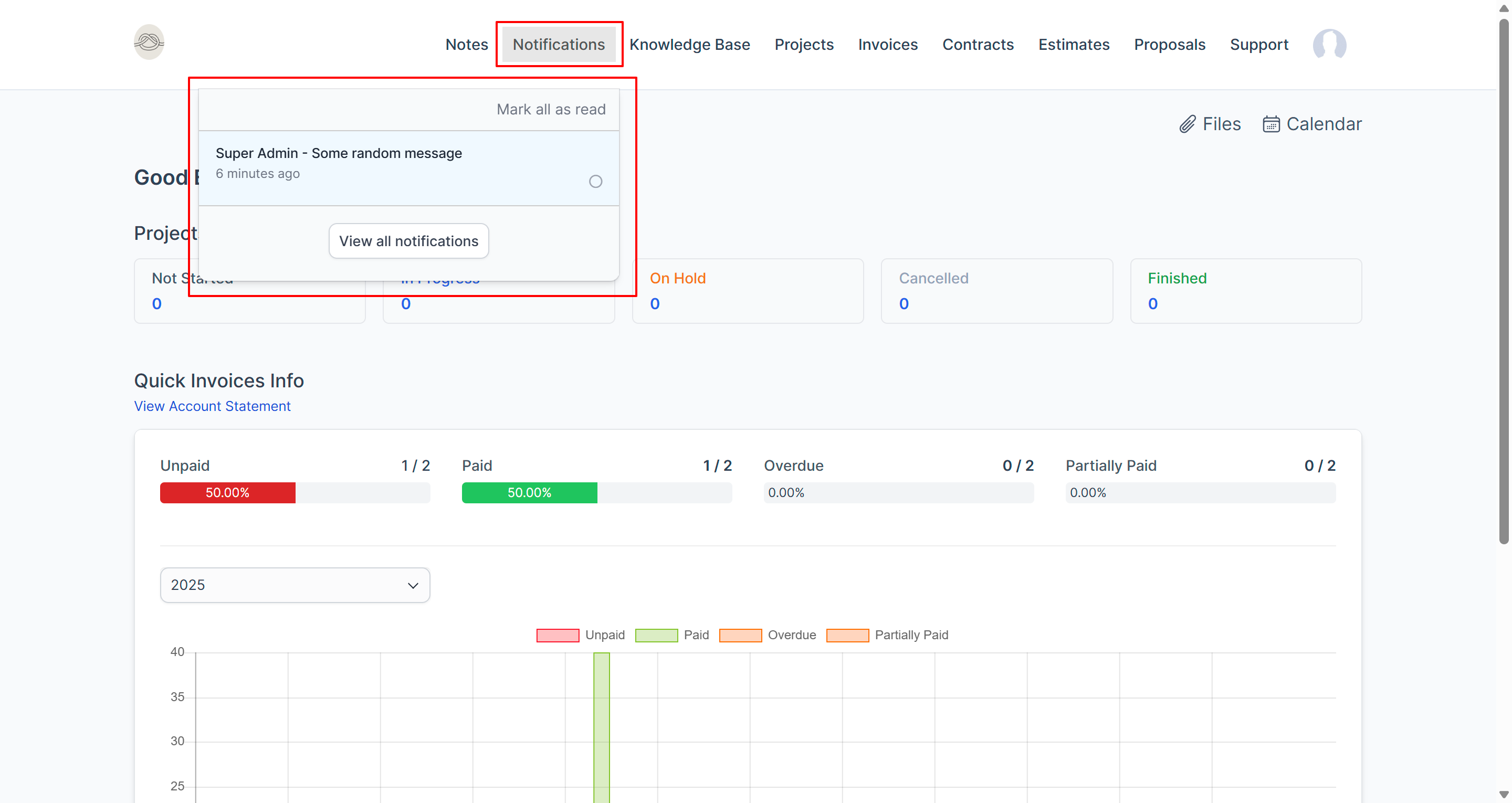 - Yes. You can manage permissions for who can create, view, or manage noteboard messages through Perfex CRM’s role management.