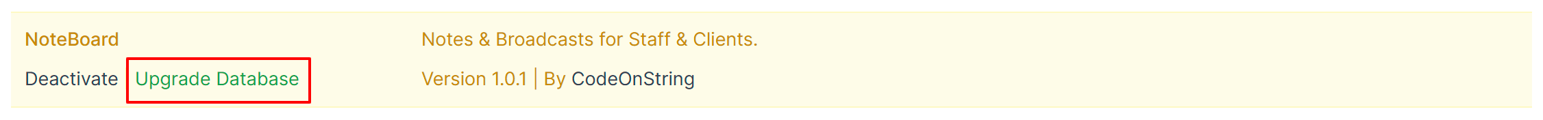 Once the module is installed, it will appear in the list of available modules below. Simply click the Upgrade Database button to update it.